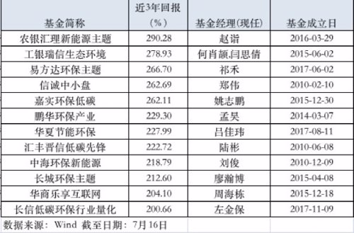 Wind数据显示,可统计近一年收益的116只基金平均回报率为37.27%,其中,仅有3只为负,其余全部取得正收益,有6只产品净值增长率翻倍。可统计近两年业绩的产品有100只,平均回报率为113.08%,55只产品收益率超过100%。可统计近三年收益率的产品有94只,平均回报率为108.75%,45只产品收益率翻倍。其中,农银汇理新能源主题、工银瑞信生态环境、易方达环保主题、信诚中小盘、汇丰晋信低碳先锋等12只基金近3年回报超200%。