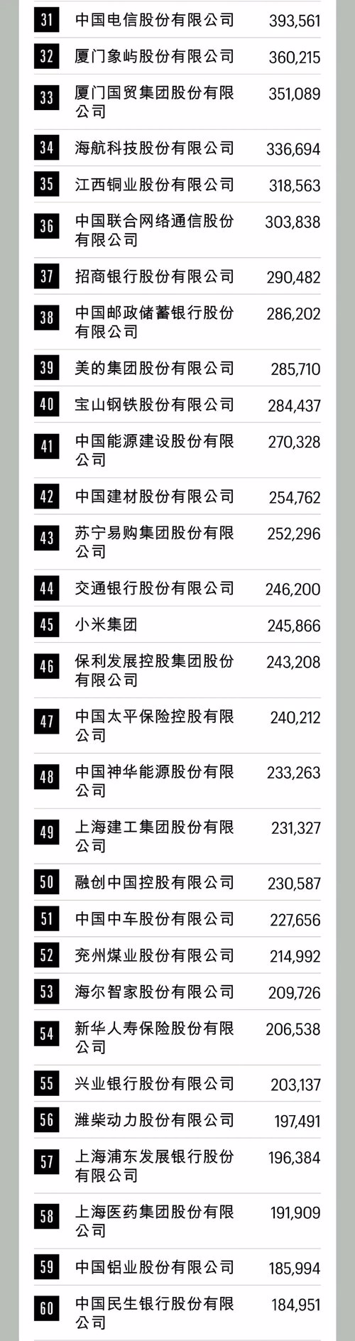 今年的三强格局并未改变,依次为中石化、中石油和中国建筑,这也是自2013年以来一直延续的三强排名。中国平安位列第四,同时也是非国有企业第一位。