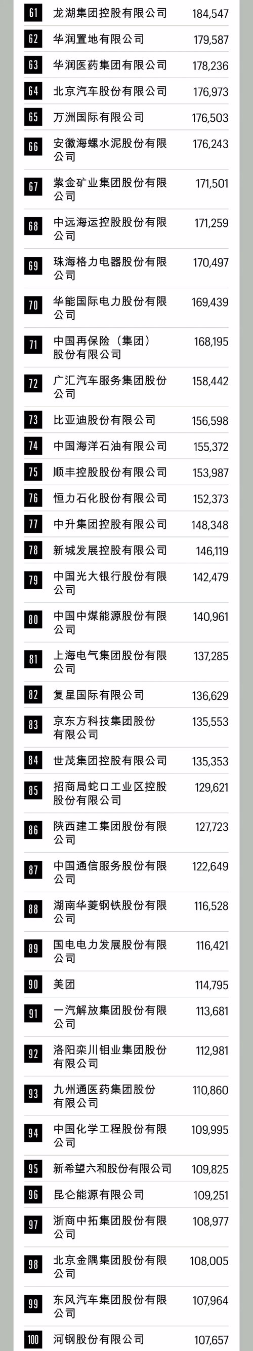 附:《财富》中国500强排行榜前100名