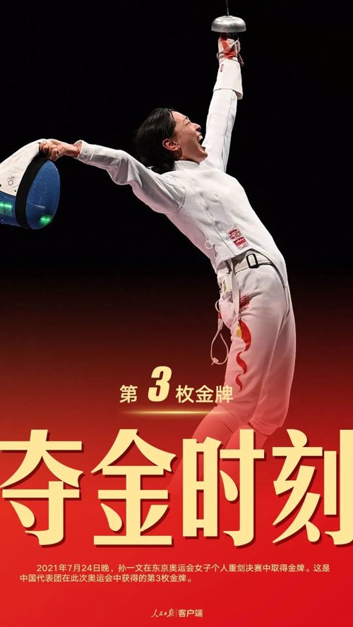 7月24日晚,孙一文在东京奥运会女子个人重剑决赛中取得金牌。这是中国代表团在此次奥运会中获得的第三枚金牌。