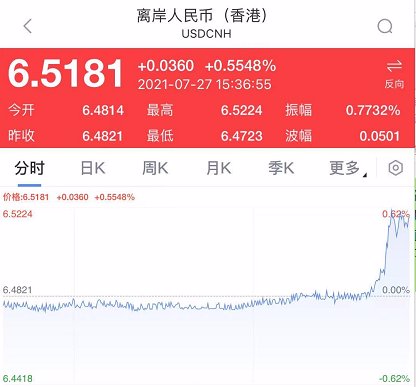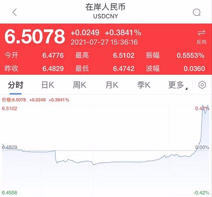 离岸人民币兑美元跌破6.52,日内贬值近400点,创4月份以来新低。在岸人民币兑美元跌破6.51。