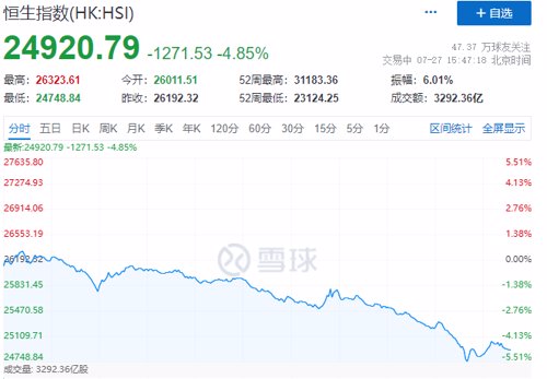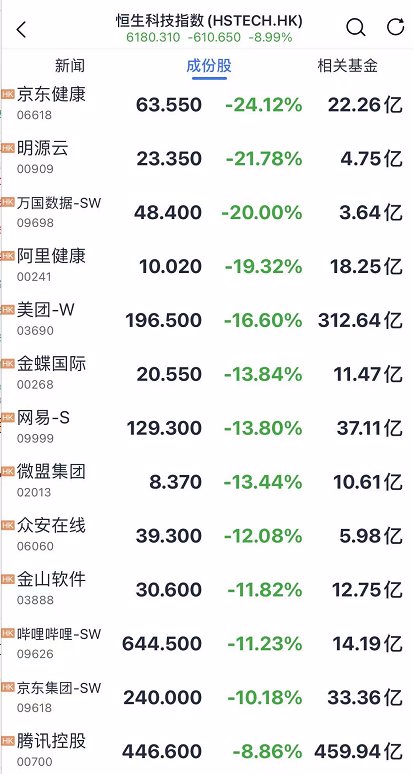 7、港股大跌,恒生科技指数一度暴跌9%