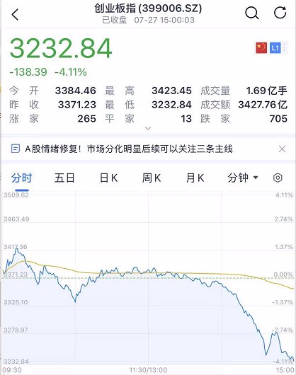 27日,A股、港股全部大跌!A股三大指数集体跳水,沪指近2个月来首次失守3400点;受宁德时代等权重午后大幅跳水影响,创业板指跌超4%;