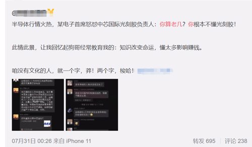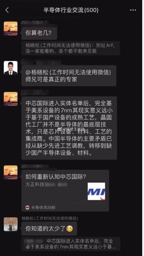 某券商首席分析师在群里怼了杨晓松,并称“你算老几”。随后这位首席分析师转发了自己几天前的文章《如何重新认知中芯国际》,对其股票进行推荐。
