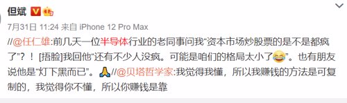 也有调侃说,前几天一位半导体行业的老同事问我“资本市场炒股票的是不是都疯了”?!我回他“还有不少人没疯。可能是咱们的格局太小了