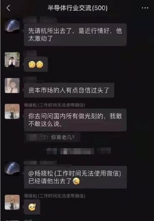 近日,网络流传了几段微信群聊的对话,在一个半导体行业500人的微信群内,在群聊对话中,被称为“中芯国际光刻胶负责人”的杨晓松直接在群内表示,“别扯ArF,没一家能看的,各个都不敢来见我。”