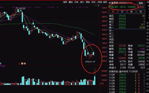 果然,今天开盘,长春高新直接跌停,盘中虽试图打开跌停,但卖盘力量强大,暴跌后,这只“东北药茅”市值还有1100多亿。