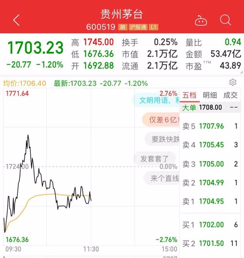 今日开盘后,酿酒股低开超2%后有所回升跌幅收窄,龙头股贵州茅台上午下跌1.2%。