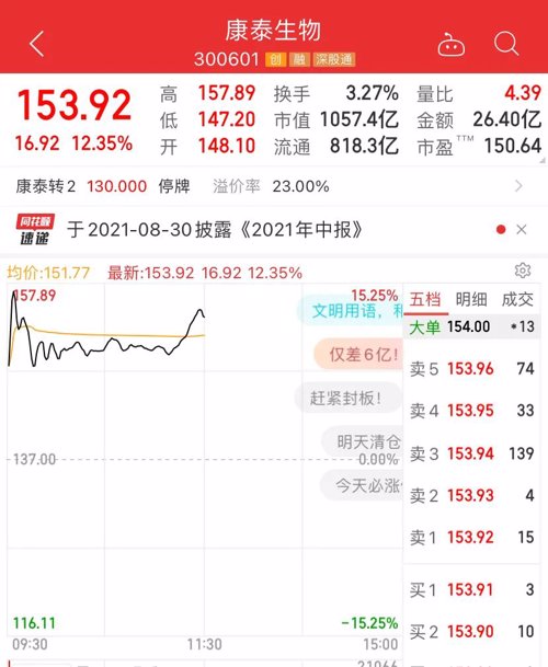 媒体报道康泰生物成功分离德尔塔变异株,千亿市值的康泰生物上午大涨超12%。