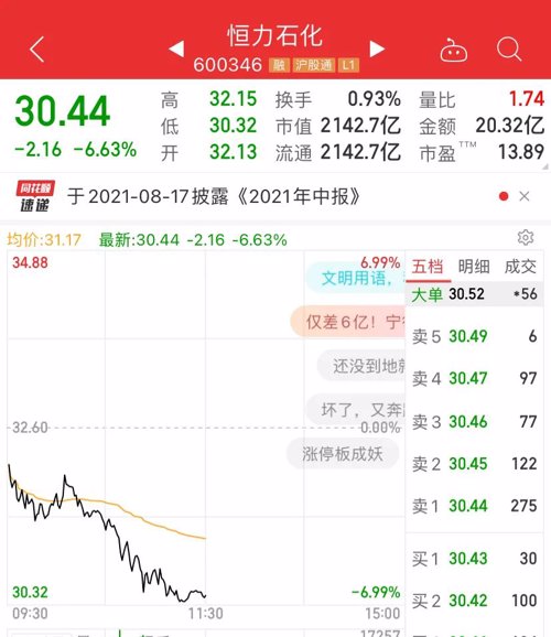 化纤板块跌幅惨烈,一只千亿龙头股东方盛虹借款增加,整个板块龙头暴跌,恒力石化、荣盛石化大跌。