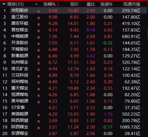 煤炭、有色板块又大涨起来,煤炭当中,华阳股份、盘江股份涨停,潞安环能、晋控煤业等纷纷大涨。