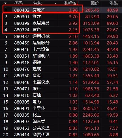 今天上午又是暴动起来,房地产板块大涨3.96%,煤炭有色等板块也活跃起来。