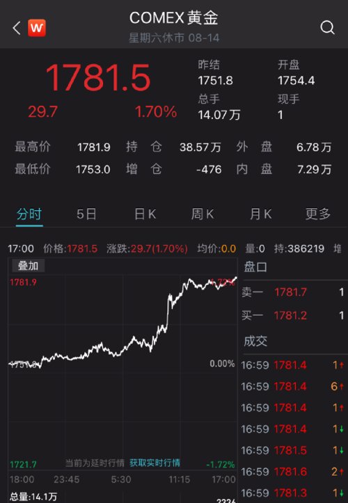 8月消费者信心数据发布后,市场对美国经济复苏的信心下降,美元急速下跌,但黄金却迅猛拉升。