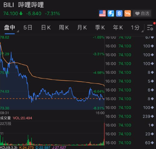 哔哩哔哩跌超7%,市值蒸发22.46亿美元,约合145亿人民币。