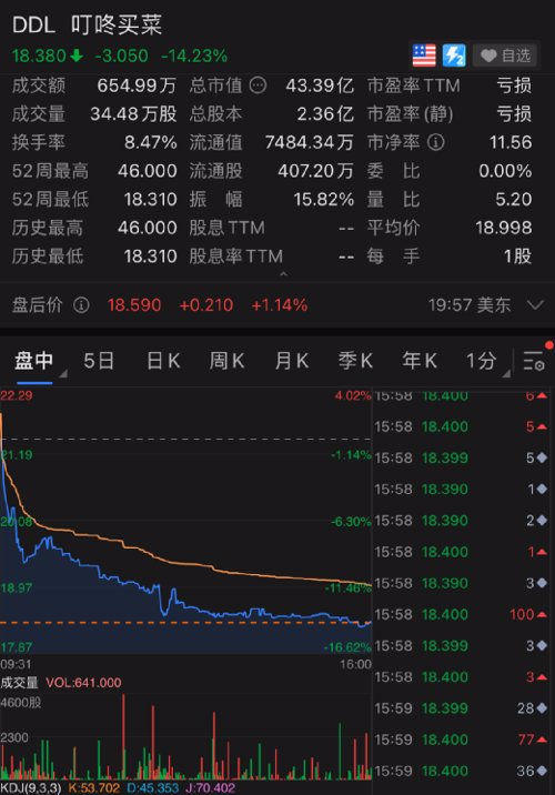 此外,叮咚买菜跌幅超14%。