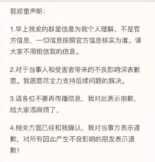 不过随后很快,该学员发布声明称,上述群里信息为个人理解,不是官方信息,一切信息按照官方信息核实为准。