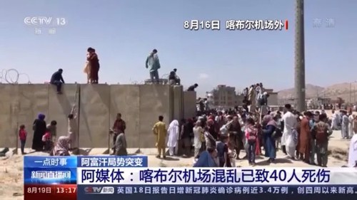 据央视新闻,阿富汗黎明电视台18日报道,自16日以来,已经有至少40人因为机场内外发生的枪击、踩踏等事件死伤。