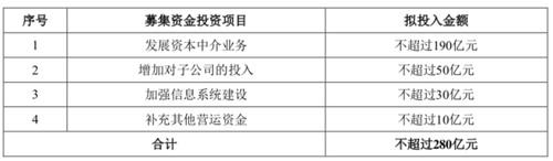 据了解,早在今年2月,中信证券就披露配股预案,计划募资不超过280亿用于发展资本中介业务、增加对子公司的投入、加强信息系统建设以及补充其他营运资金,其中将投入不超过190亿发展资本中介业务。