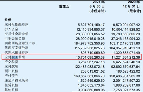 截至2021年6月30日,中信证券负债总额为人民币 9775.60