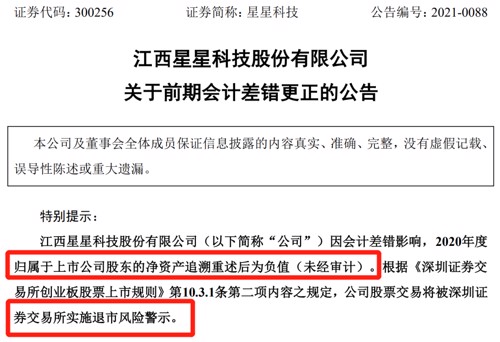 星星科技突然要被*ST