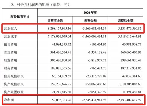 在一系列操作之后,星星科技2020年度的净利从原本的5203万,直接调整为亏损近25亿元。