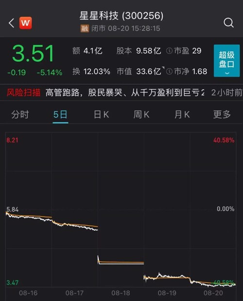 8月20日晚间,星星科技连发16条公告,披露大额亏损的同时,更将在下周被实施“退市风险警示”。