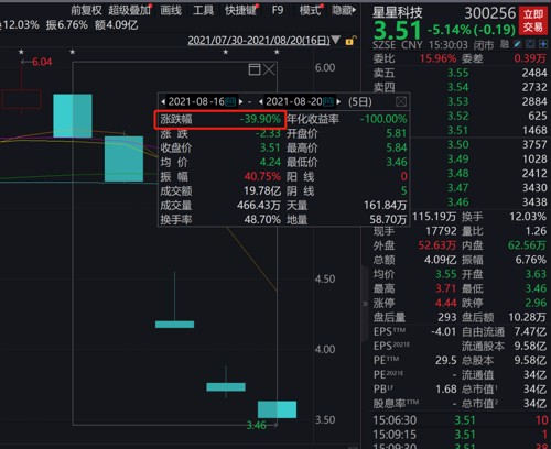 上周,星星科技股价已暴跌近40%。