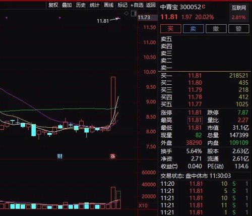 元宇宙龙头股中青宝,今天更是一字20CM涨停,连续2个20CM涨停。