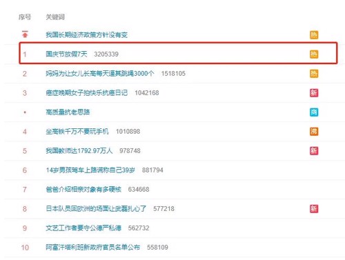 大家心系的国庆节7天放假也出来了,并登上微博热搜第一名。