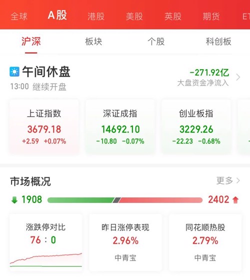 上午收盘,上证指数微涨0.07%,深证成指微跌0.07%,创业板指数跌0.68%,科创50指数大跌1.82%,个股2402个上涨,1908个下跌,两市成交额9314亿元。