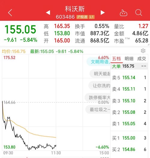 也有多只重磅股突发大跌,千亿光伏组件股天合光能突发闪崩,900亿扫地茅科沃斯也突然大跌。白酒医疗电气设备等板块大跌,天合光能、石头科技等大跌也带动科创50指数大幅下跌。