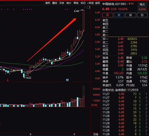 千亿级的核电股中国核电罕见涨停,市值1131亿元。中国核电近期持续拉升。
