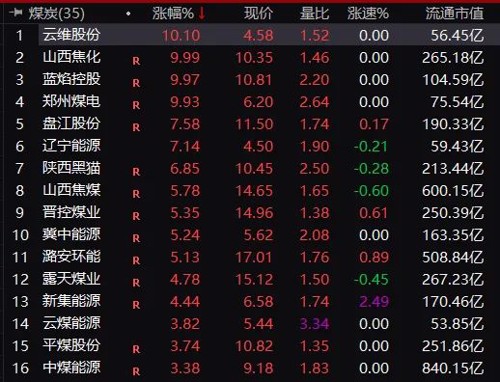 云维股份、山西焦化、蓝焰控股、郑州煤电等个股掀涨潮。