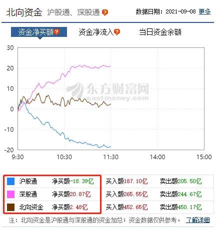 北上资金上午分化厉害,沪股通净卖出18亿,深股通净买入20亿,合计净买入为2亿元。