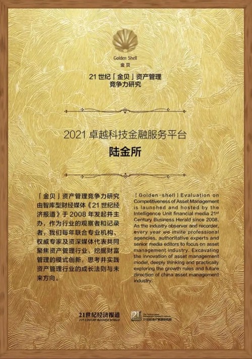 9月17日,由知名财经媒体《21世纪经济报道》主办的“2021中国资产管理年会”在沪举办,同时揭晓了第十四届“金贝”资产管理竞争力研究结果,陆金所再获“2021卓越科技金融服务平台”殊荣。这是陆金所连续六年入选,体现出市场、用户对陆金所科技创新与成果的认可。