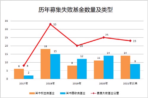 中融内需价值一年持有的募集失败,让今年新发基金募集失败的数量扩容至23只,逼近2020年创下的25只的历史第二高位。考虑到临近今年收官还有3个多月,今年发行失败基金数量突破历史第二高,甚至挑战2018年熊市中创下的33只的纪录,都存在可能。