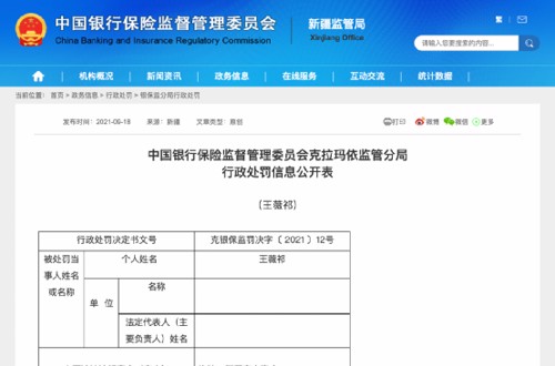 值得注意的是,当事人王某祁因诈骗、挪用客户资金,中国银行保险监督管理委员会克拉玛依监管分局对其处以禁止终身从事银行业工作的处罚。