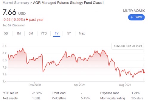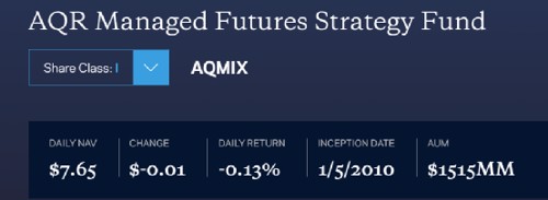 这只名为AQR管理期货策略的产品主要以量化策略来投资期货产品,是全球趋势跟踪领域最著名的基金之一。这些基金使用算法,试图识别并锁定全球期货市场持续上涨或下跌的趋势所带来的利润。