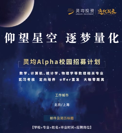 另外,灵均投资前不久也推出了“灵均Alpha校园招募计划”,招聘数学、计算机、统计学、物理学等数理相关专业,进行实习考核、定向培养。