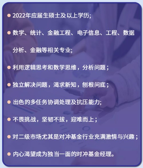 “我们现在招人不止看研究生学历,对本科学校要求也很高,希望是清北复交的。专业方面,更偏向于学科类的,包括数学、统计、金融工程等复合的人才,而不是金融出身的。”沪上某大型私募市场人士告诉基金君。