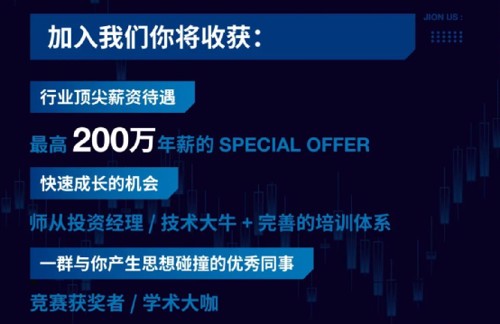 在薪酬待遇方面,一些量化私募给优秀人才开出100万、200万的年薪,直接放在招聘广告里面,也有一些私募表示奖金弹性非常大,还有落户、住房等福利待遇。
