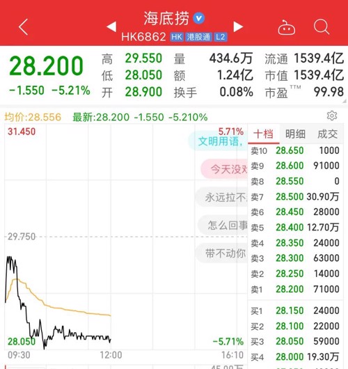 重要的金融股、科技股、消费股纷纷重挫。中国平安大跌3.85%,招商银行大跌3.79%,美团、小米也大跌近4%,餐饮火锅龙头海底捞大跌5.21%,火锅底料的颐海国际跌超9%。