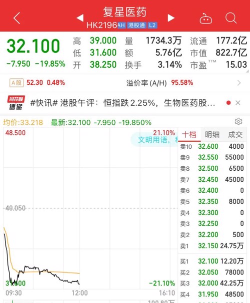 康希诺、复星医药等AH股跌幅较大的,或对A股走势有明显影响。其中复星医药今年6月底股东户数就有20.3万户。
