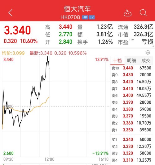 10月4日消息,中国恒大和恒大物业公告,股票今天上午九时正起短暂停止买卖。而恒大汽车继续交易,上午暴涨10.6%。