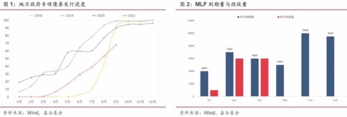 以财政手段为主的政府投资在实施过程中离不开货币政策的配合,特别是在资金量层面对货币政策有较强的需求。具体来看,今年地方政府专项债发行后置,截至9月末共发行 23660 亿元,完成全年发行量的68%。而根据地方专项债最新的发行安排,12月份之前要全部发行完毕,使得10月和11月每月将有6500亿元左右的地方政府债新增发行,对整个债券市场的流动性将造成较大考验。此外,四季度MLF到期规模较大同样也对资金面形成了扰动。10月份MLF到期规模5000亿元,11月份为10000亿元,12月份为9500亿元,整体到期规模较大。地方政府专项债和 MLF到期叠加,使得10月-11月面临 2.8 万亿的资金缺口,如果全部通过MLF对冲,2.95%的 MLF 利率与目前商业银行同业存单价格相差30bp左右,变相提高了银行的负债端成本,难以促成银行体系进一步向实体经济让利。综合来看,从传统的框架进行分析,货币政策面临的降准压力较大,通过全面降准1个百分点左右能够有效上述压力,同时能够降低商业银行成本,进一步支持实体经济复苏。