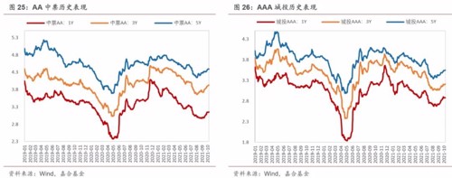 本周信用债收益率整体上行。中票各等级各期限收益率均上行,其中, 3 年期 AA 级上行幅度最大 (8bp);城投债各等级各期限收益率均上行,其中 1 年期 AA 级上行幅度最大(7bp)。