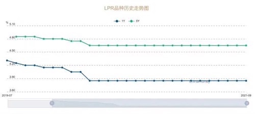 数据显示,在LPR改革前,即2019年7月,1年期、5年期以上LPR报价分别为4.31%、4.85%(2019年8月),最新一期LPR分别为3.85%、4.65%,已连续维持17个月不变。