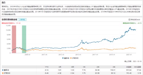 公开资料显示,董承非鹏是2003年9月就正式进入兴业全球(后改名为兴证全球),从毕业后就一直在公司,担任基金经理的年限逼近15年。
