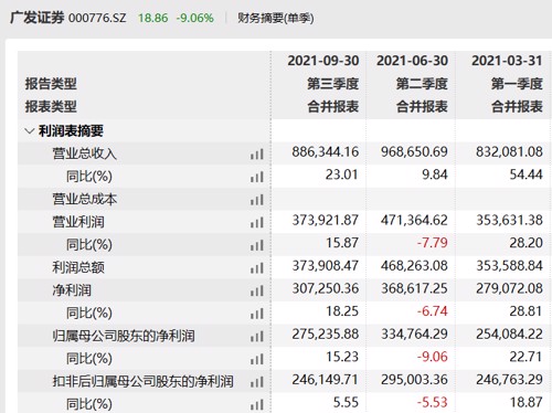 消息面上,2021年10月28日晚间,广发证券发布前三季度报告称,前三季度营业收入268.71亿元,同比增长25.49%;归属于母公司所有者的净利润86.41亿元,同比仅增长6.15%。