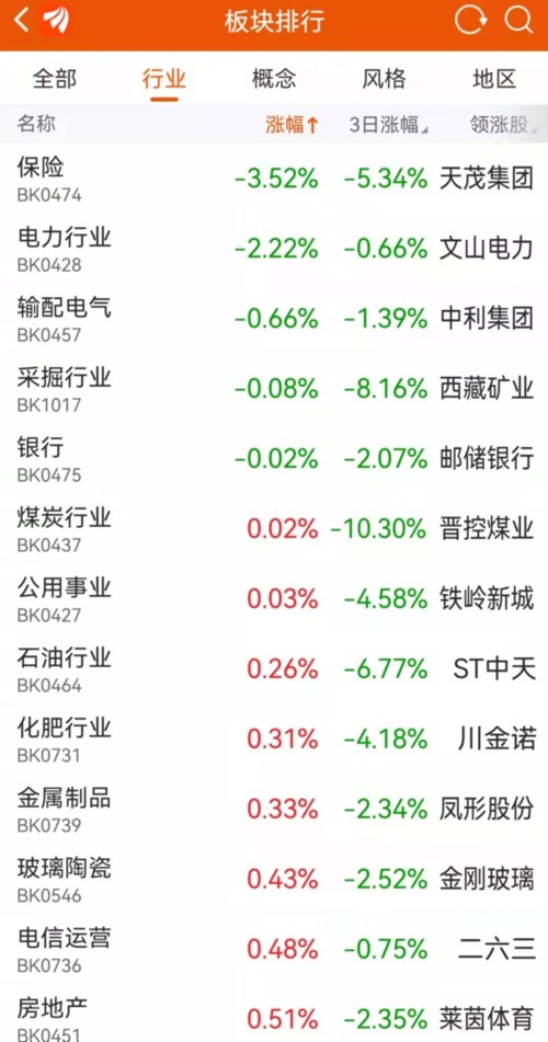 保险、地产、电力调整。前期火爆的光伏、风电、储能等板块业集体回调。